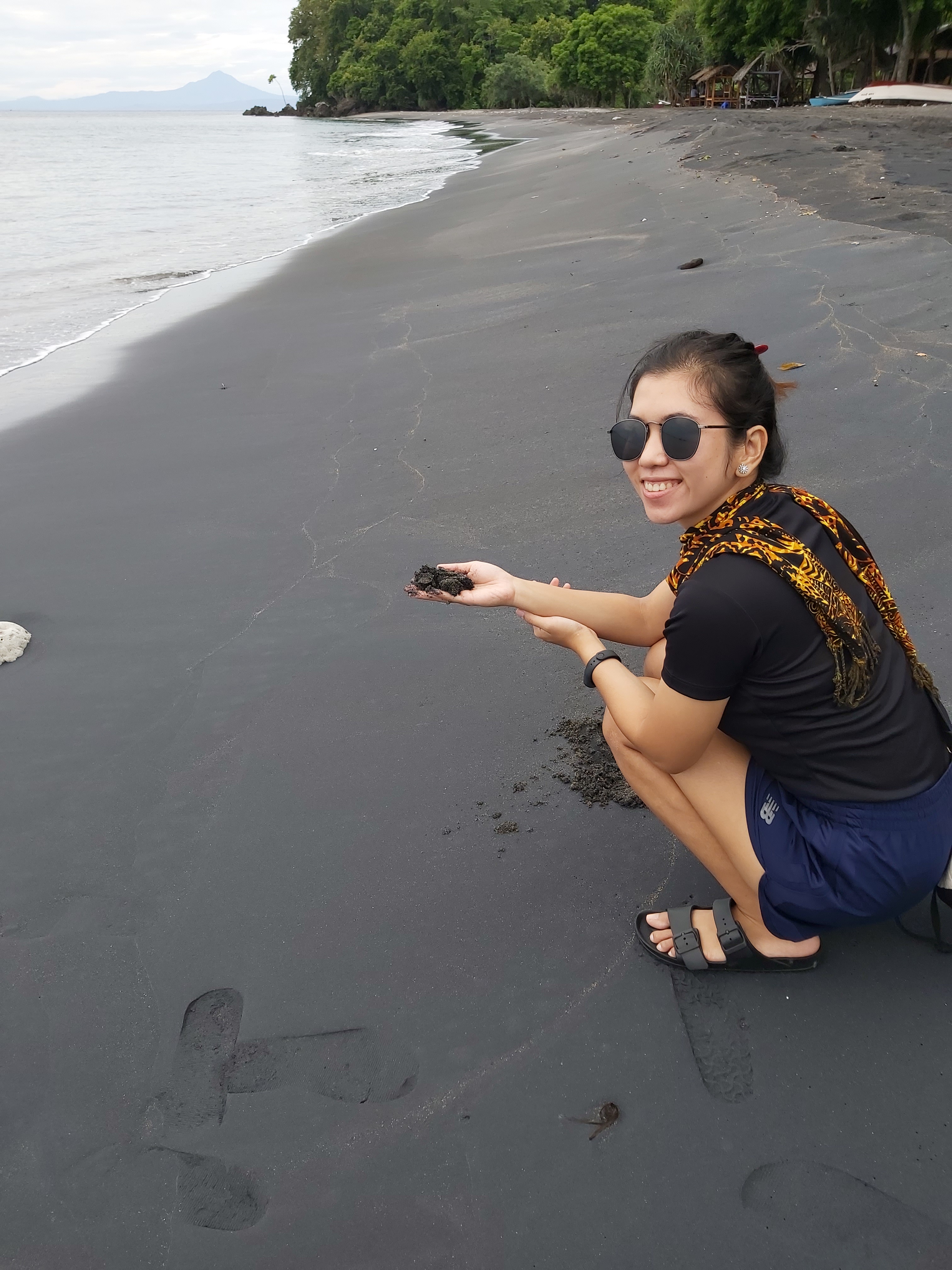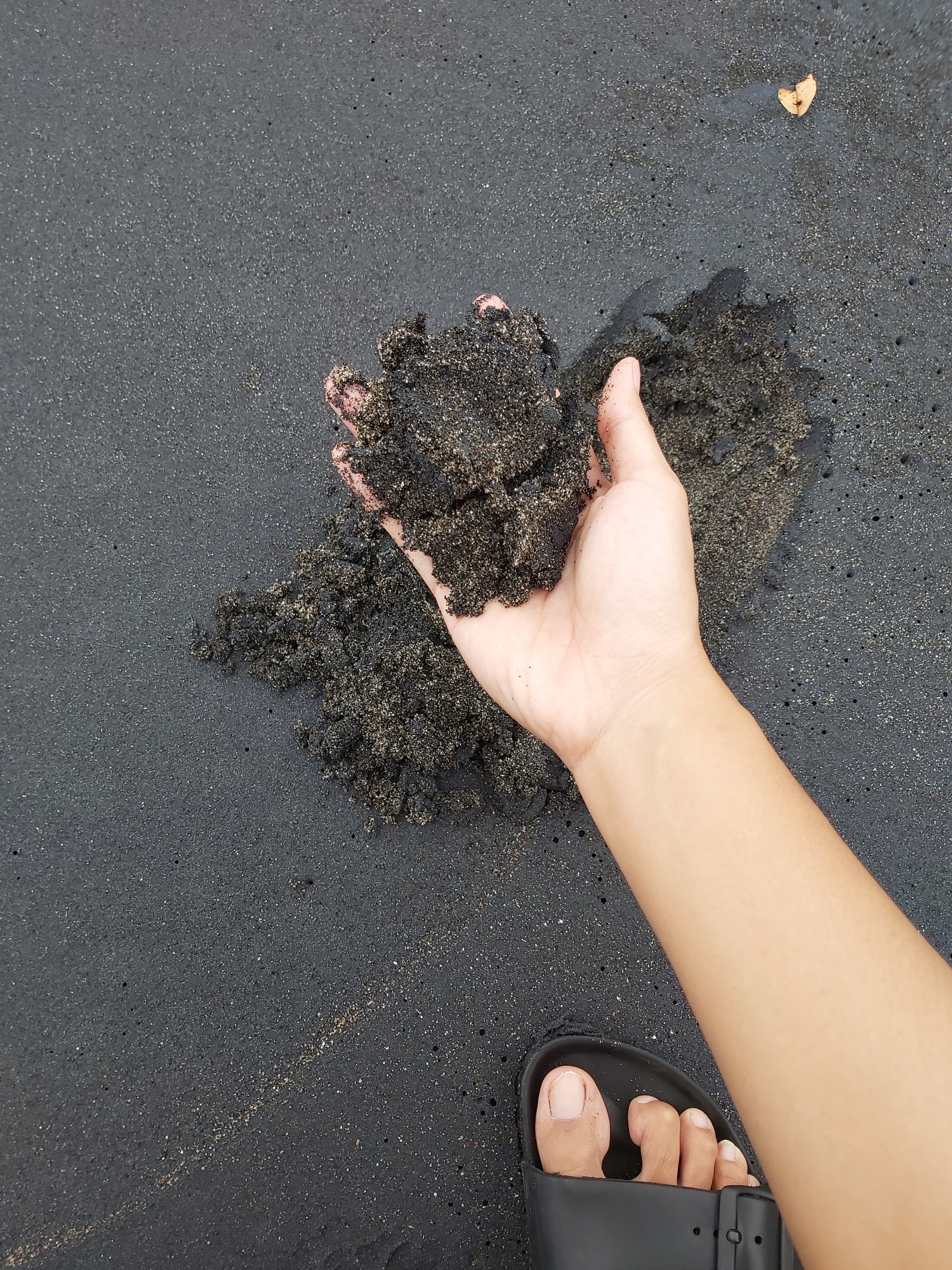 Saya tidak tahu apakah perasaan saya saja atau tidak, namun saat saya mencium pasir pantai tersebut seperti ada bau yang berbeda dengan bau pasir putih pantai yang biasanya. Mungkin itulah bau logam, pikir saya waktu itu.