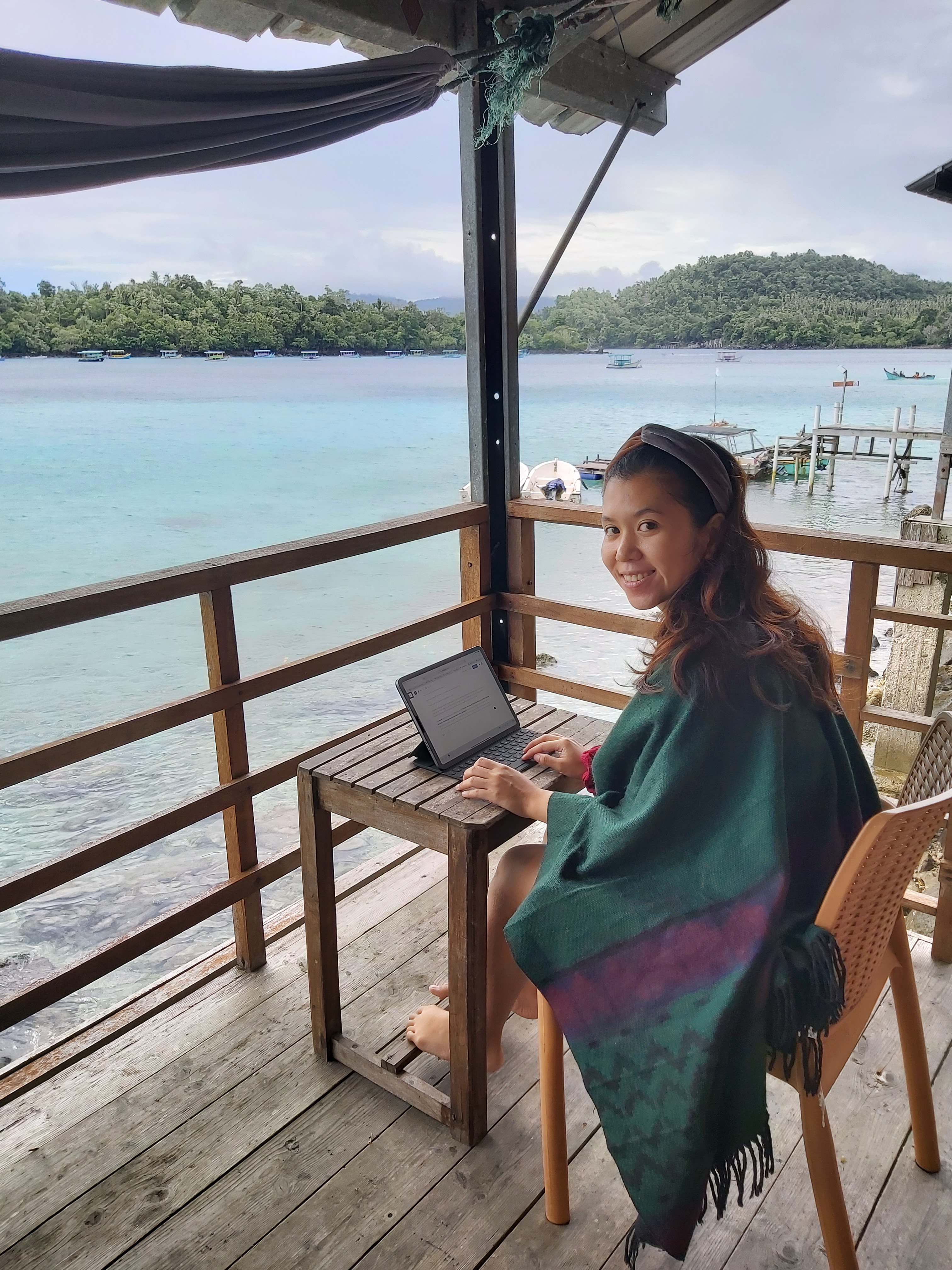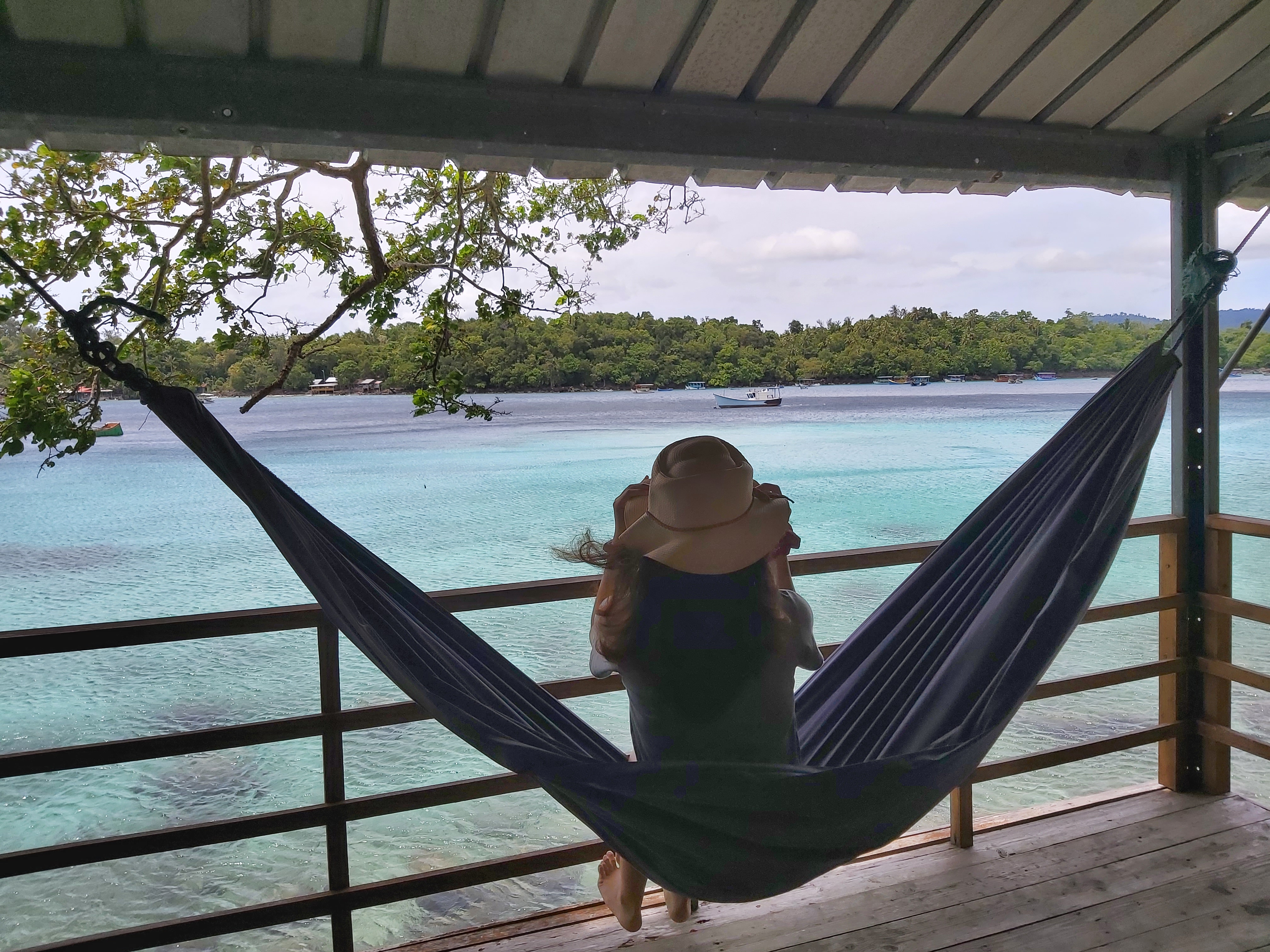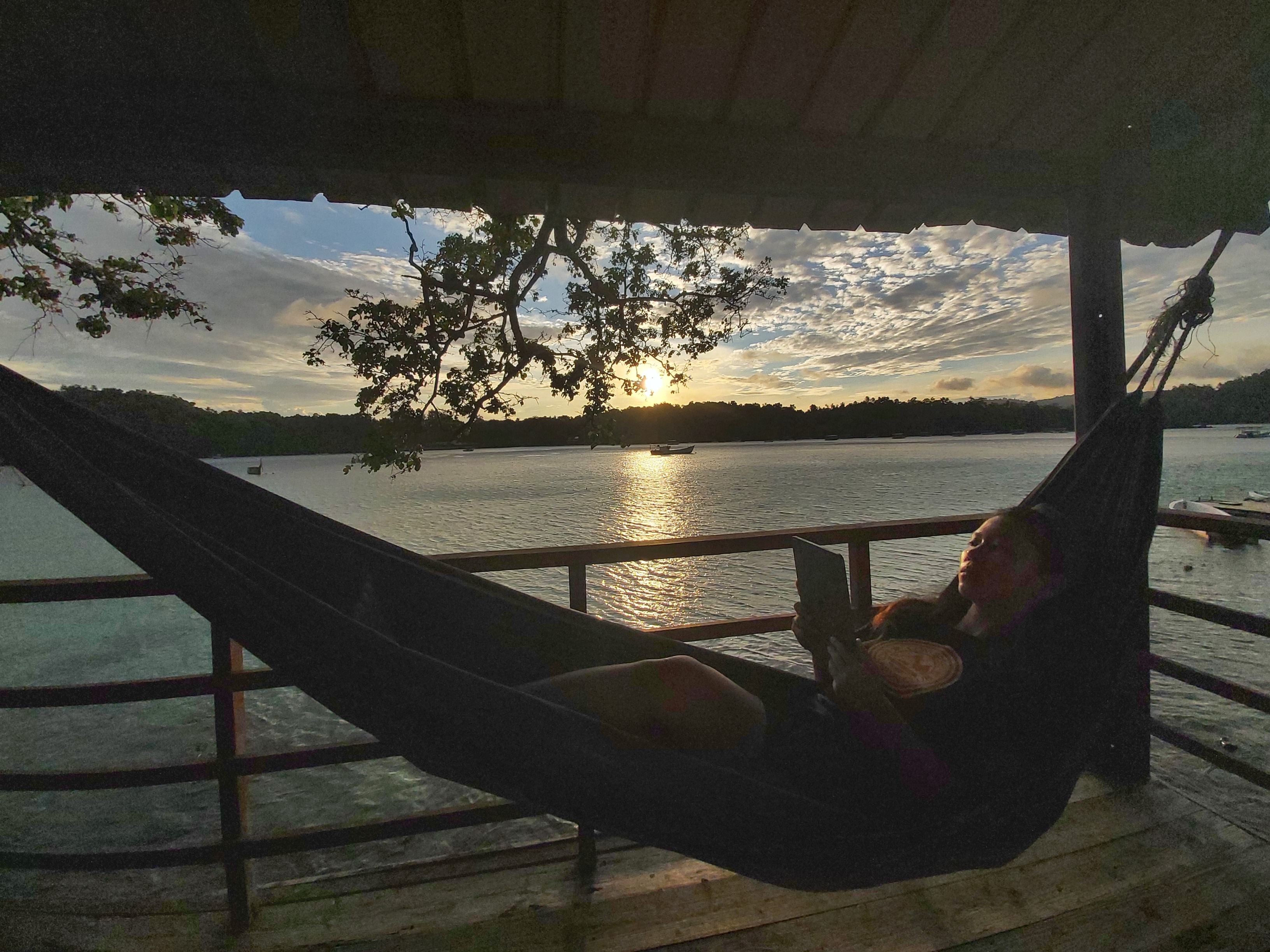 Kami menginap di Olala selama 2 hari 2 malam. Jadi keesokan harinya kami berencana untuk snorkling, namun ternyata zonk. Pagi itu cuaca sedang tidak bagus. Padahal saat subuh, sunrise sangat begitu bagus. Namun sekitar sejam kemudian hujan deras turun. Sangat berbahaya sekali jika kami memaksakan diri untuk snorkiling. Jadi kami sehari pertama disana kami gunakan untuk beristirahat, blogging dan menikmati penginapan tersebut.